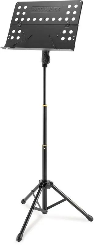 Пюпитр с перфорированной откидной подставкой для нот и фиксаторами страниц, 3-секционным телескопическим штативом с механизмом быстрого изменения высоты стойки одной рукой EZ Grip и прочной треножной складывающейся опорой