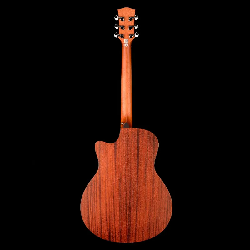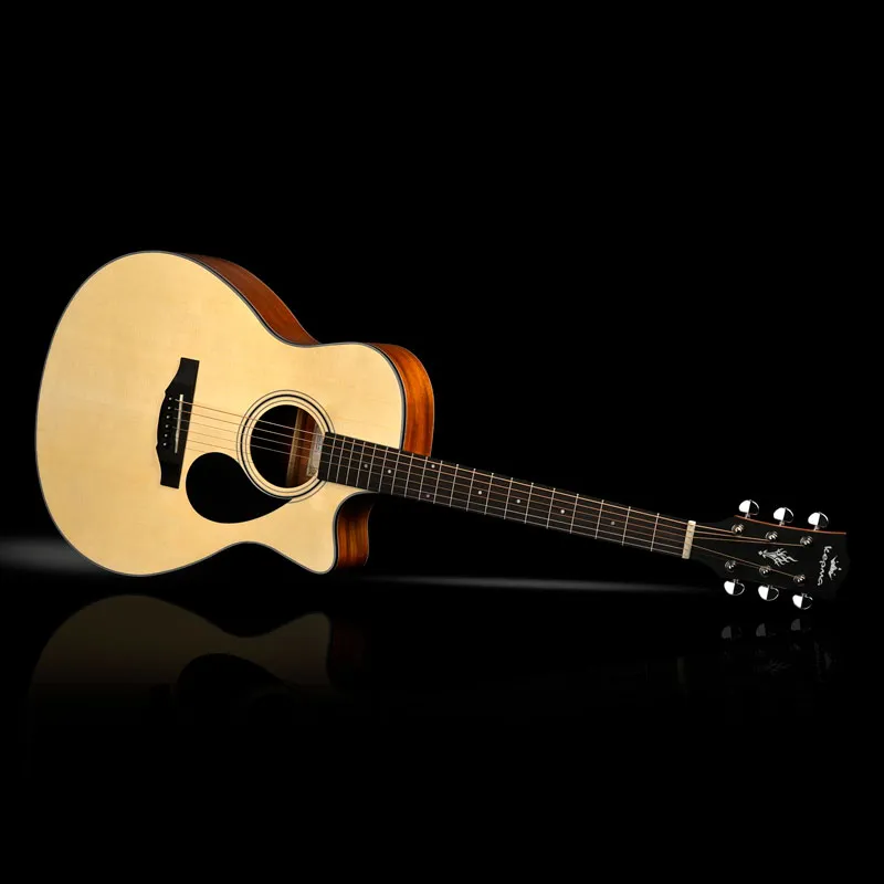 В гитаре Kepma EACE используется самая популярная, проверенная временем формула древесины верхняя дека из ели, нижняя дека и обечайка из махагони. Для корпуса используется многослойная древесина она проще в обработке, абсолютно стабильна и неприхотлива к перепадам влажности и температуры. Такую гитару можно без опасений взять с собой на природу и в дорогу. Гриф гитары также выполнен из махагони, и имеет современный тонкий профиль C-Shape это значительно повышает удобство игры и упрощает процесс обучения. Накладка грифа выполнена из цельного китайского палисандра.