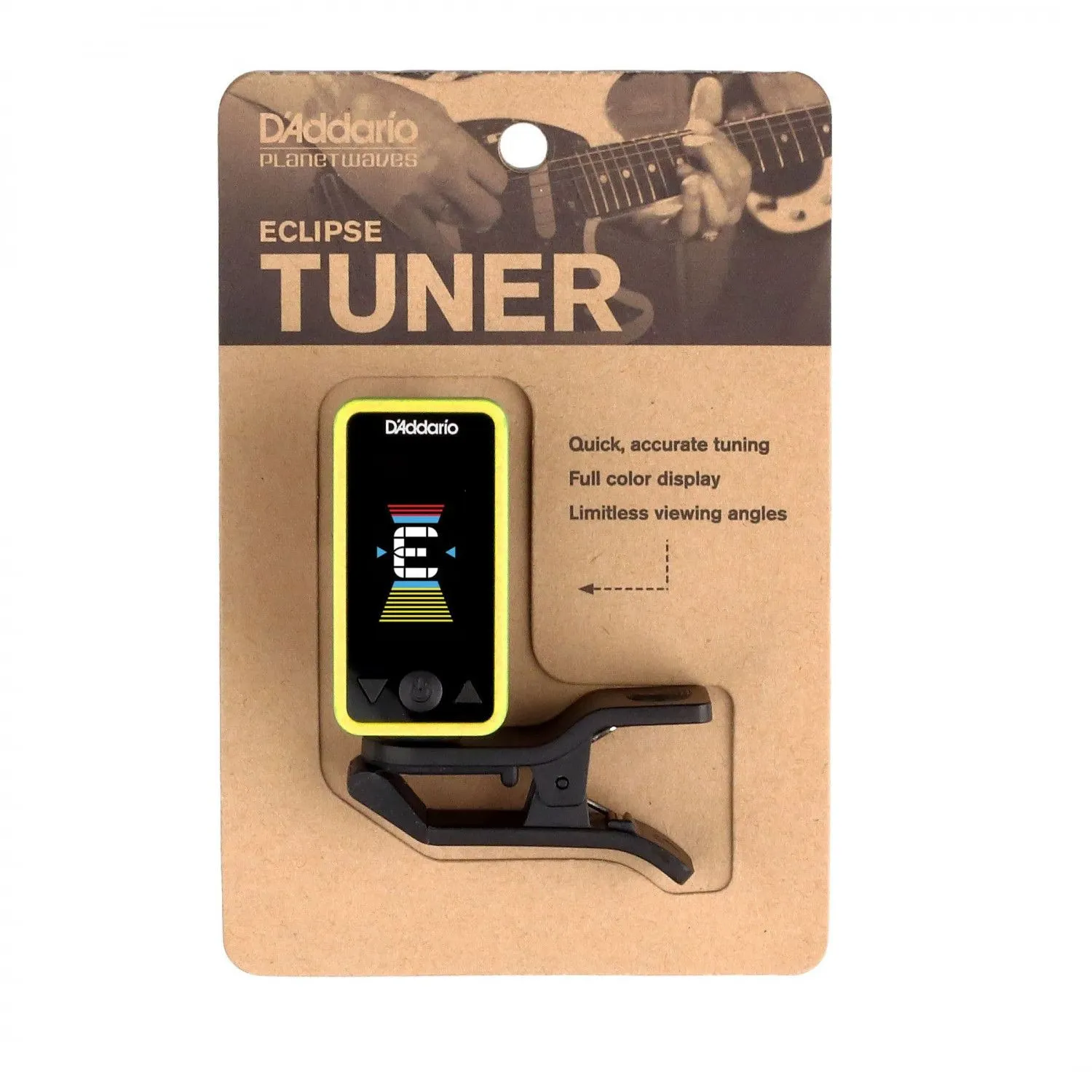 Хроматический тюнер Eclipse на прищепке обеспечивает точную и быструю настройку на сцене и вне ее. Тюнер оснащен полноцветным вертикальным дисплеем, функцией автоматического отключения, а также возможностью калибровки основного тона. Поворотный дисплей обеспечивает идеальный угол обзора, тюнер может быть установлен как сзади, так и спереди головки грифа, на праворукие и леворукие инструменты.